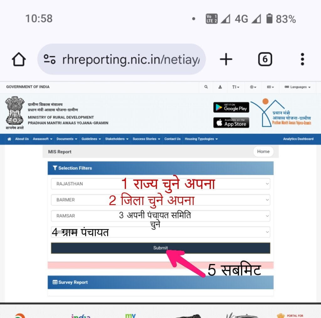 प्रधान मंत्री आवास सर्वे लिस्ट PM AAWAAS LIST 2025 मे अपना नाम देखने के लिए दिए गए लिंक पर क्लिक करके अपना राज्य , जिला , पंचायत समिति और अपनी ग्राम पंचायत भरके अपना नाम चेक कर सकते है